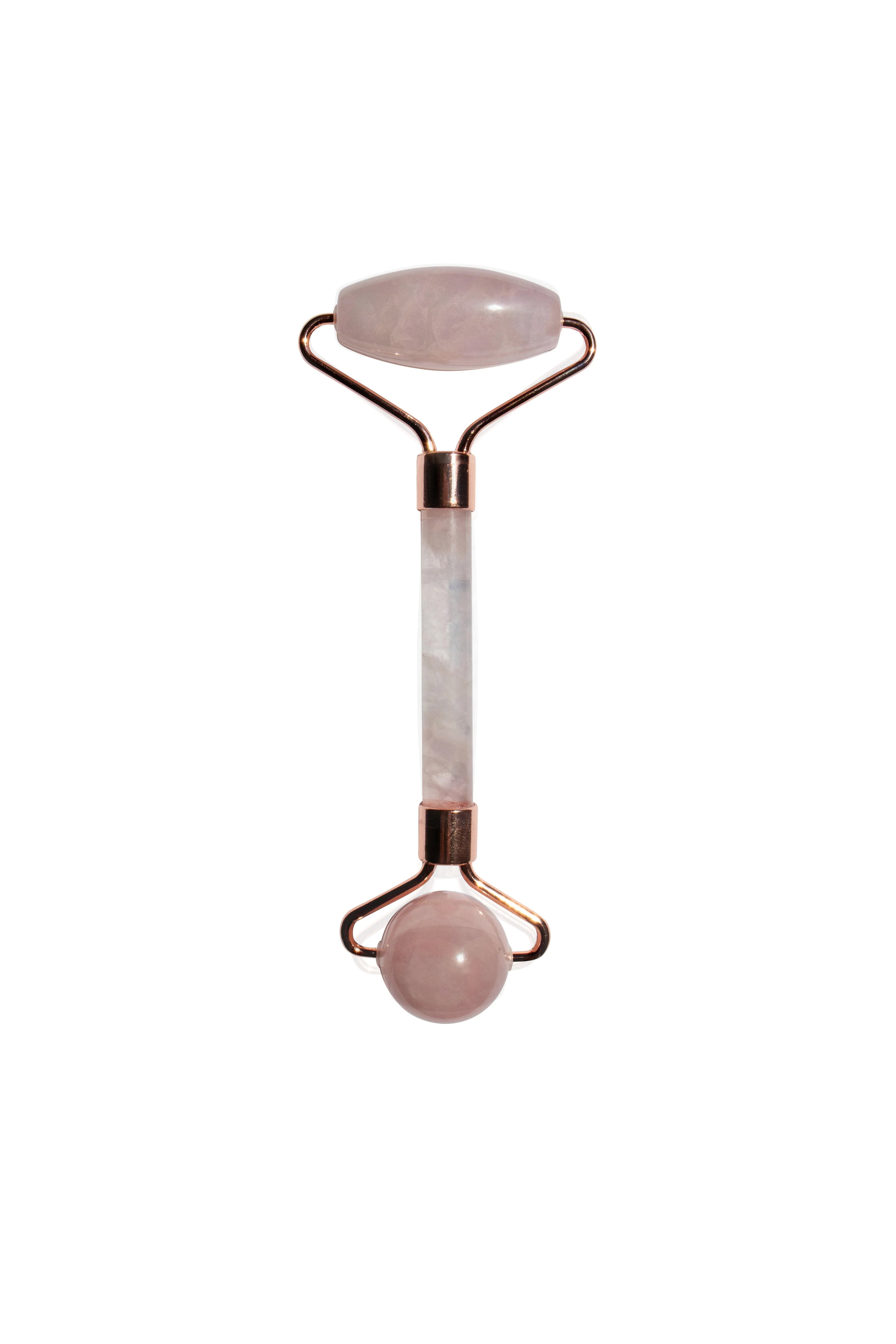 This dual-ended facial roller is crafted from natural jade stone and finished with gold-toned hardware. Use it to depuff, lift, and add a cooling moment of calm to your skincare routine. Use larger end for cheeks + jaw, smaller end for eyes + temples.