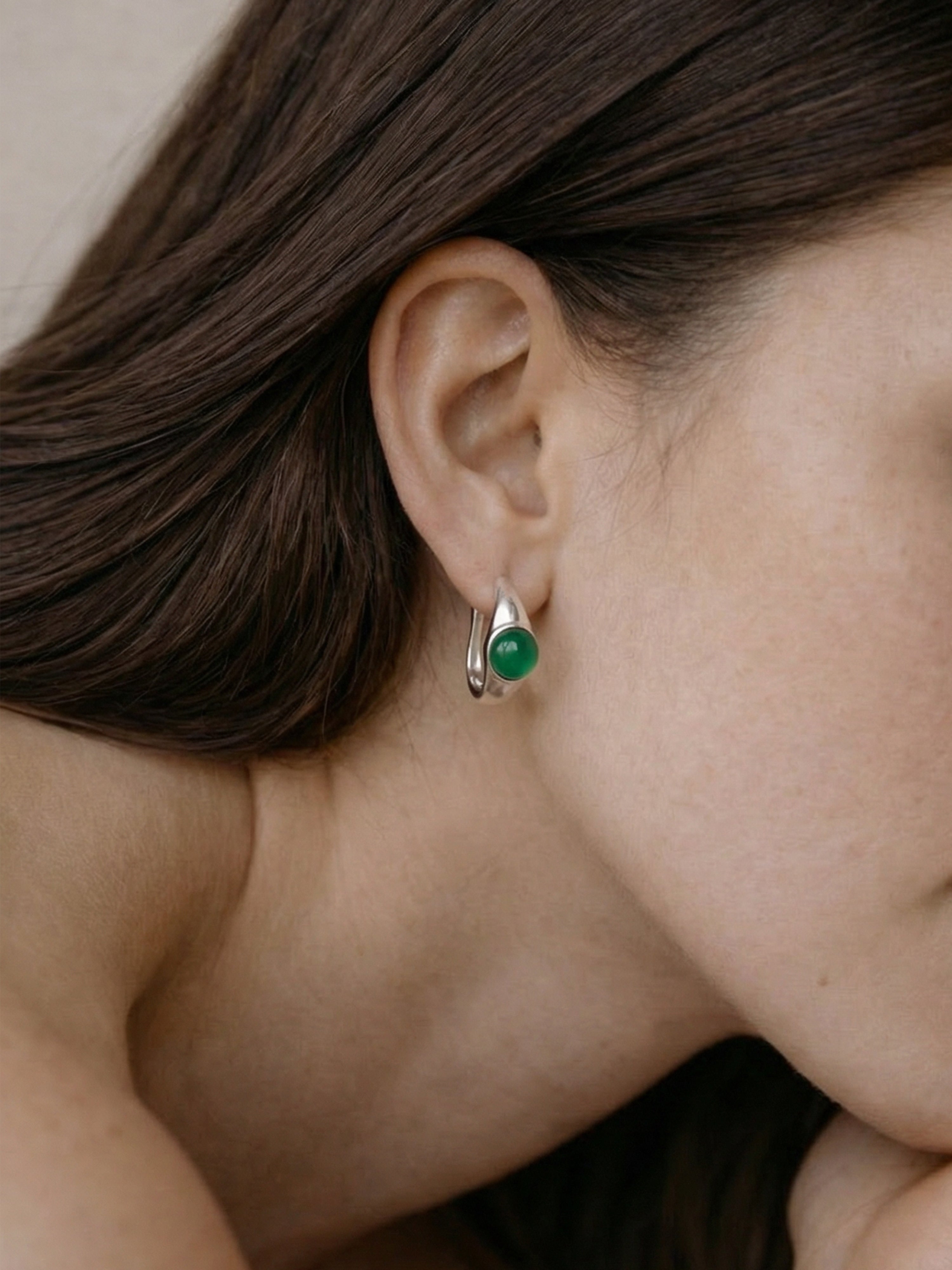 Amelie Skinny — Jade Stone Hoop Earrings in Green