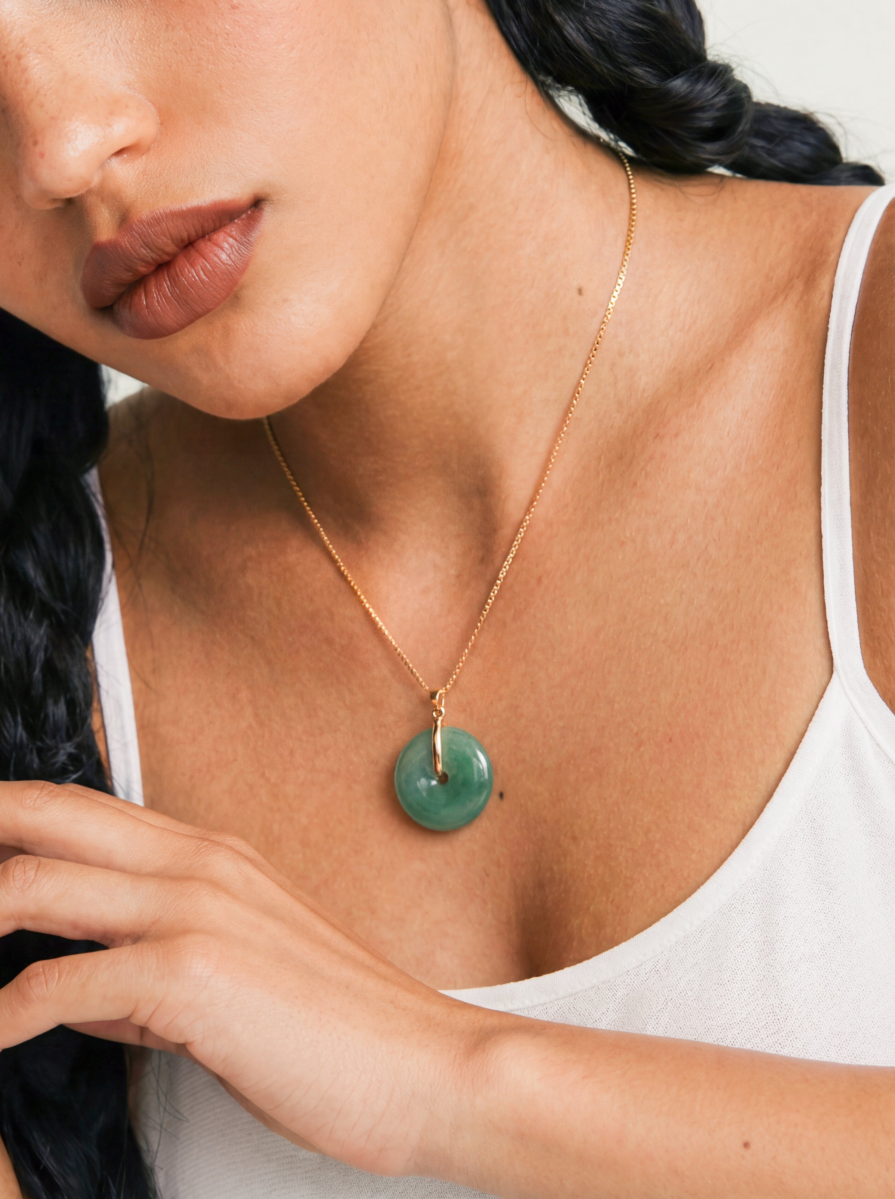 Natural jade stone made by handwork of carving and polishing. Because of the gemstone’s natural characteristics, each piece may vary slightly in colors and textures.