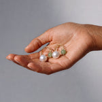 Ana may be a palindrome, but these earrings will surprise you from every angle. A delicate nephrite bead on one end, with a pearl at the other, strung onto gold-plated sterling silver. Ana is as luxe as she is unique.