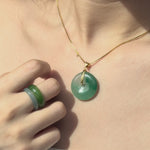 Natural jade stone made by handwork of carving and polishing. Because of the gemstone’s natural characteristics, each piece may vary slightly in colors and textures.