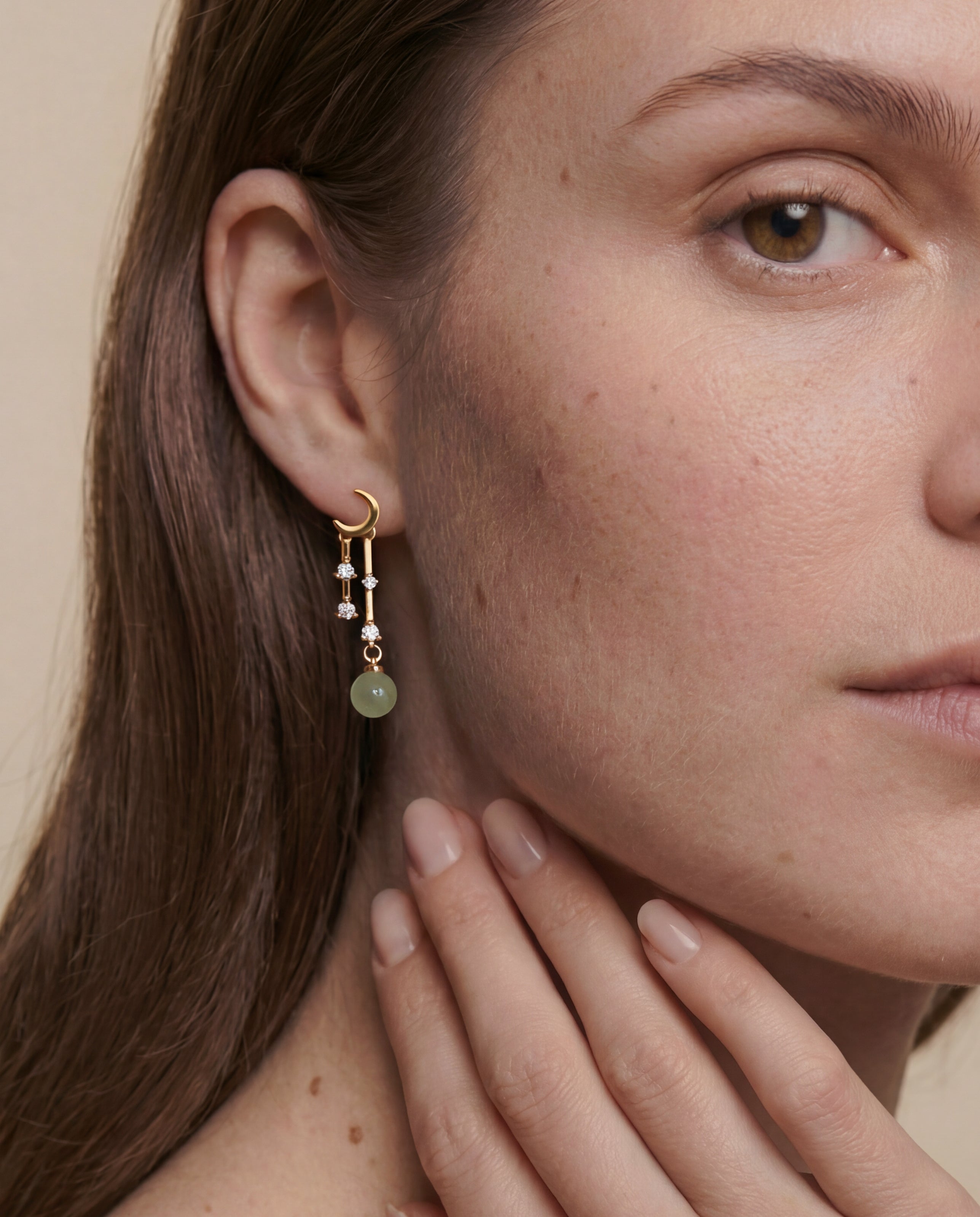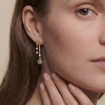 Crafted from 14k gold-plated sterling silver, zircon, and nephrite jade, this pair of drop earrings that features a moon and stars will for sure make a flashy yet elegant statement. Pair with a black party dress or an oversized sweater.