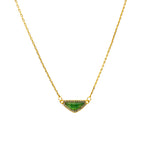A subtle statement with a modern twist. This necklace features a rich green chalcedony cut into a sleek triangular silhouette, framed with delicate pavé accents for just the right touch of sparkle. The gold-plated brass adjustable chain lets you layer or wear it solo for everyday ease. Perfect for adding a hint of color and quiet luxury to any outfit.