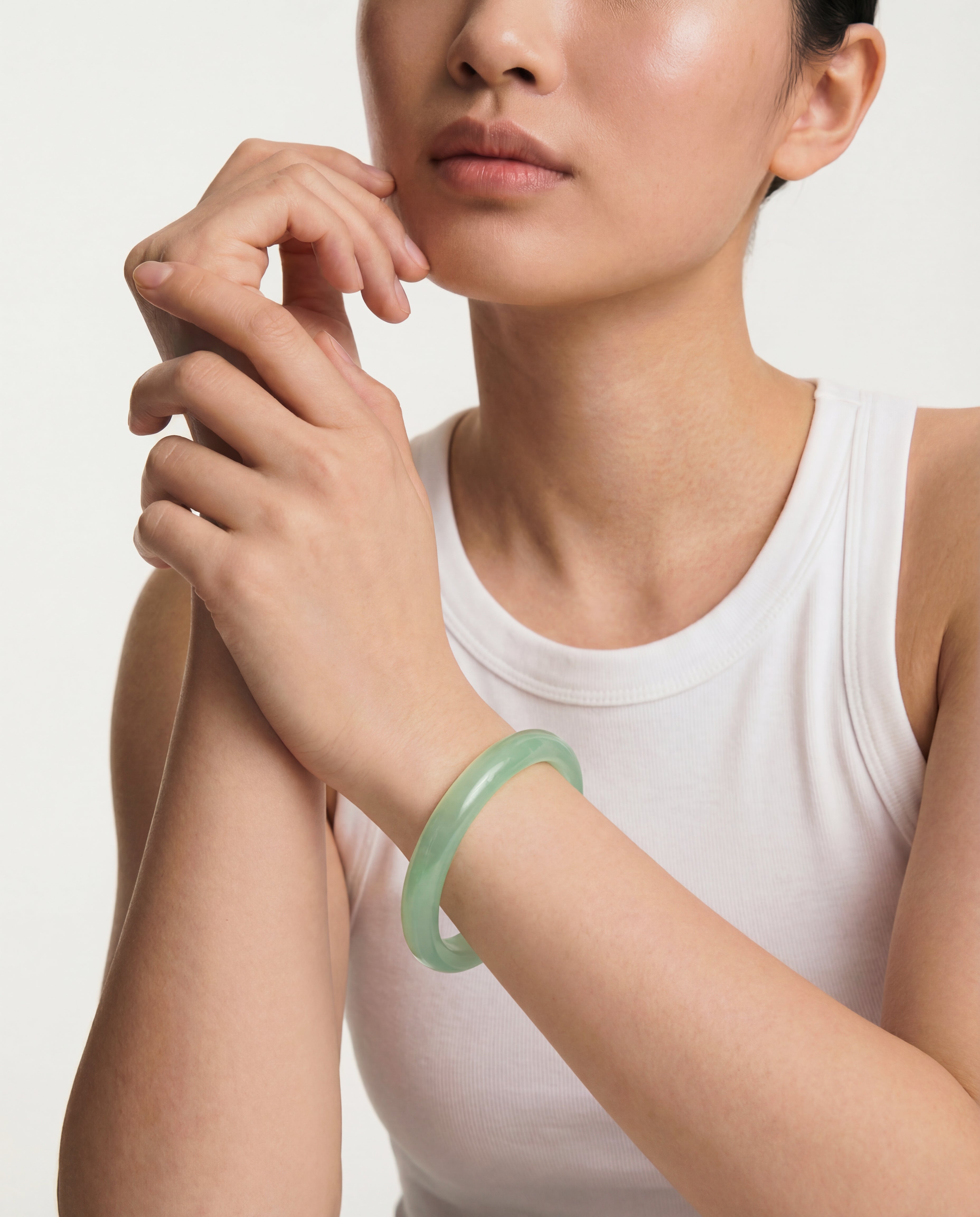 I've wanted a bangle like this for many years. I never made the purchase because similar pieces were always beyond the budget. But, I found myself with a little unexpected money for treats and did a quick search for 'jade' bangles and found Seree. I'm very happy that I did. Not only is my "Pond, Cyan, skinny" bangle the new queen of my jewelry box, but the cost made the purchase an easy decision.