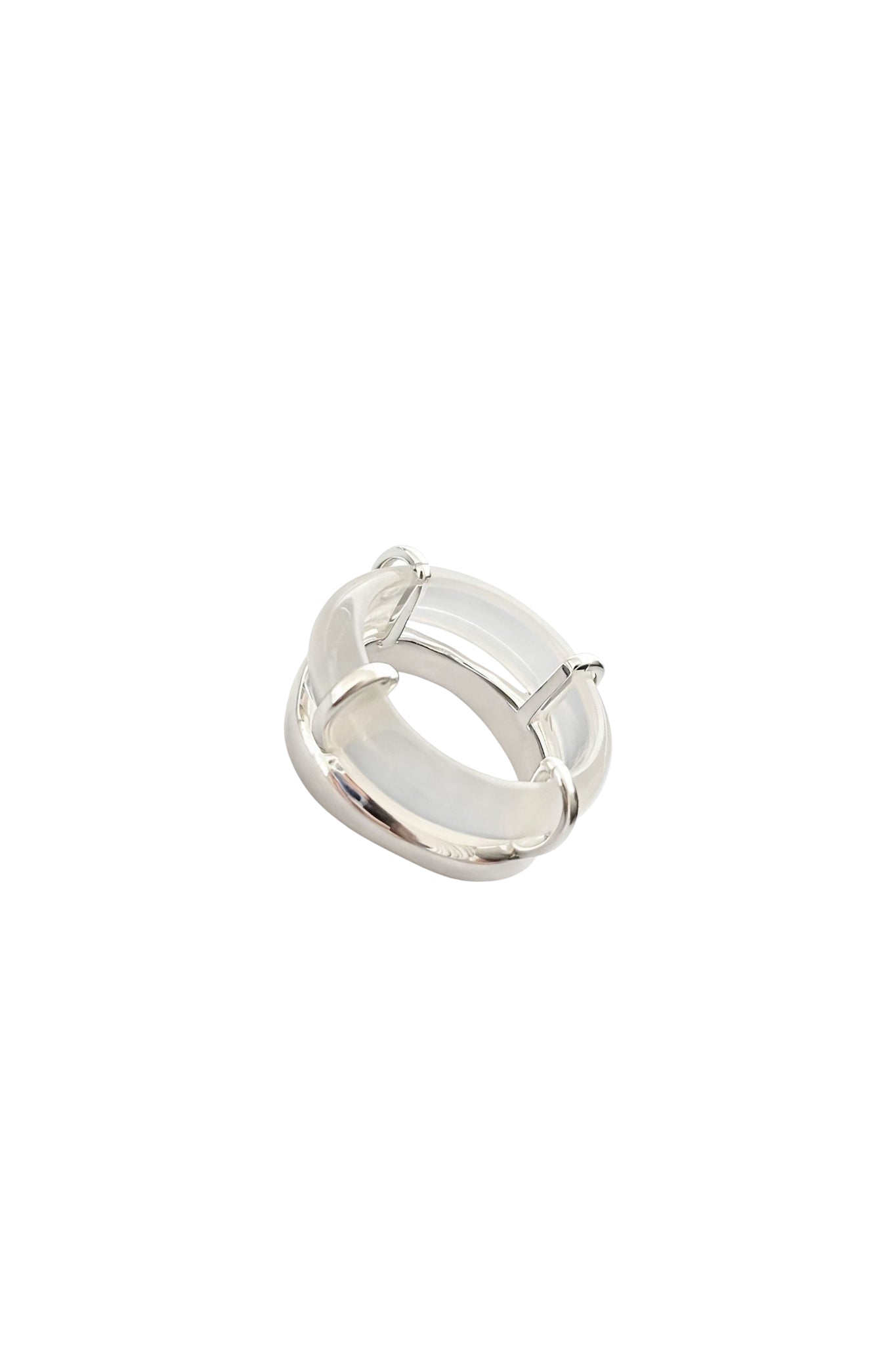 It’s giving sculptural elegance. With a chunky curve of white chalcedony hugged by silver-plated brass, this ring feels like wearable architecture. Fluid, bold, and artful.
